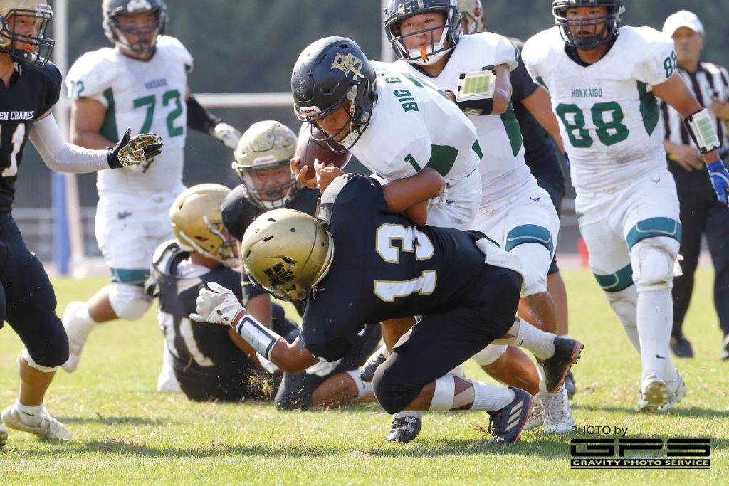 主将のLB都築駿輔(4年)は「北海学園大の敗戦で、雨宮のリターンを修正した。1週間で仕上げた」としてやったりの表情。強力ランを支えたT山田は「4年目3人で押しまくった。目の前の相手を、笛が鳴るまで押し続けた」と胸を張り、堅守でゲームを作ったDL大熊多聞(4年)も「学園に負けた悔しさを忘れず、今日は力強く頑張った」と言葉を弾ませていました。