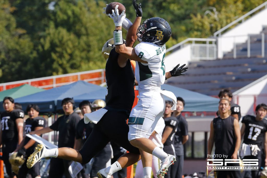 試合後、樋之本彬HCは「4年生OLが頑張り、ランプレーが出た。パントリターンなど決めるべきところで決められた。去年の借りを返せた」と選手の頑張りをたたえたうえで「もう1回チャンスがあれば、必ずつかみ取りたい」と2校優勝とプレーオフを見据えまし。決勝点となったパントリターンTDのWR雨宮は「ラッシュが来ていたが、横に振って外し、あとはスピードでブロックを生かした。リターナーの役割を果たせた」と会心の走りを振り返りました。