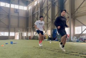 ラダートレーニングです。始めは軽くこなせますが、後半になるにつれてだんだんと足が動かなくなっていきます。